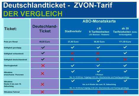 Wir empfehlen Schülern und Freiwilligendienstlern aber auch das BildungsTicket für 15 Euro pro Monat als sinnvolle Alternative. Das BildungsTicket gilt im ZVON-Verbundgebiet bzw. im ZVON-Verbundgebiet und im gesamten Landkreis Bautzen. Link zu Bildungsticket -