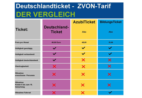 - Gültigkeit: auf allen Linien zum ZVON-Tarif, bundesweit im Nahverkehr (in Regionalzügen, Stadt- und Regionalbussen, Straßenbahnen, U- und S-Bahnen …)